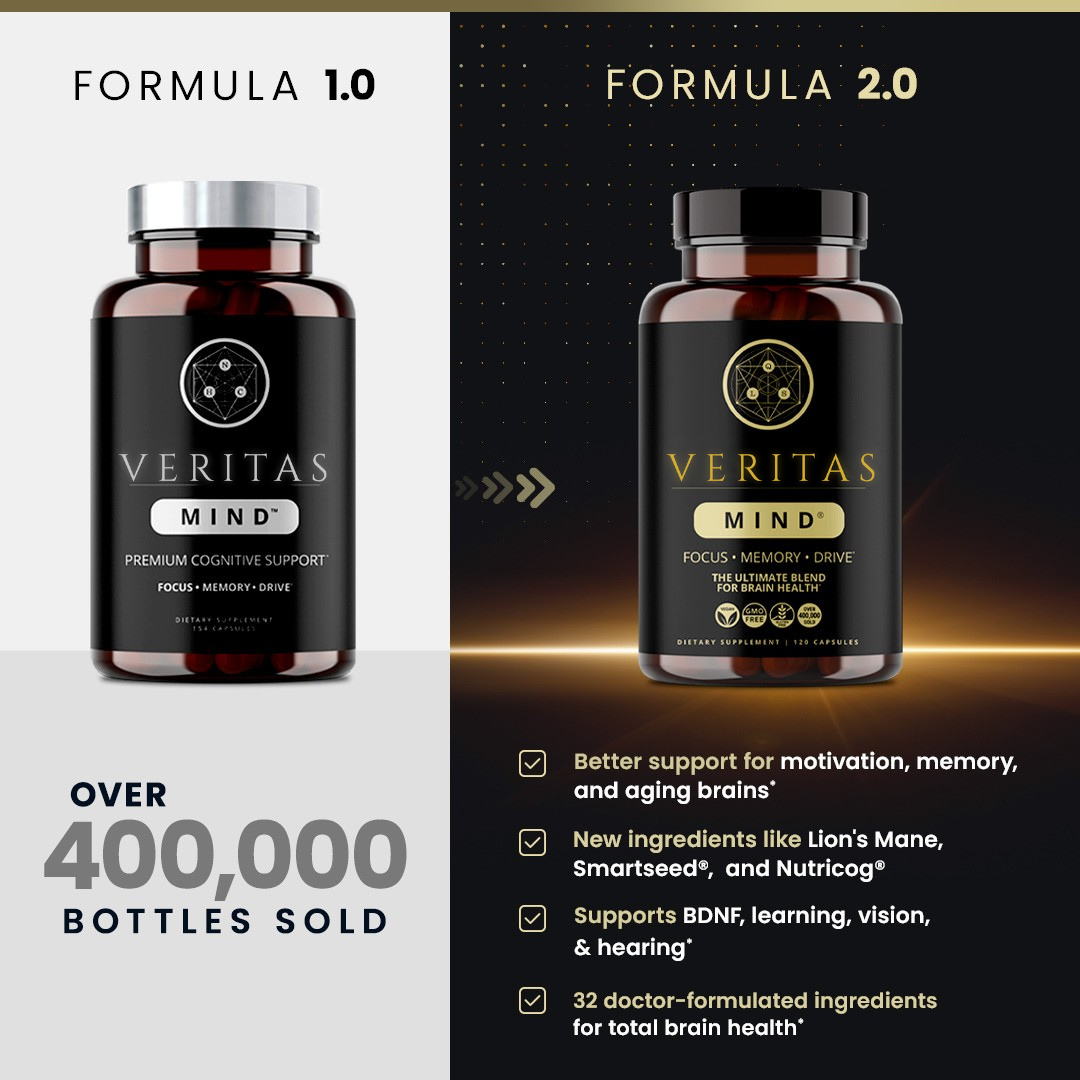 There are hundreds of compounds purported to benefit brain health. When our science team of MD, ND, and PhD level expertise embarked on crafting Veritas Mind's new formulation, they researched thousands of studies to identify key non-GMO, gluten free compounds whose scientific and clinical evidence truly warranted inclusion in the ultimate blend for brain health.*